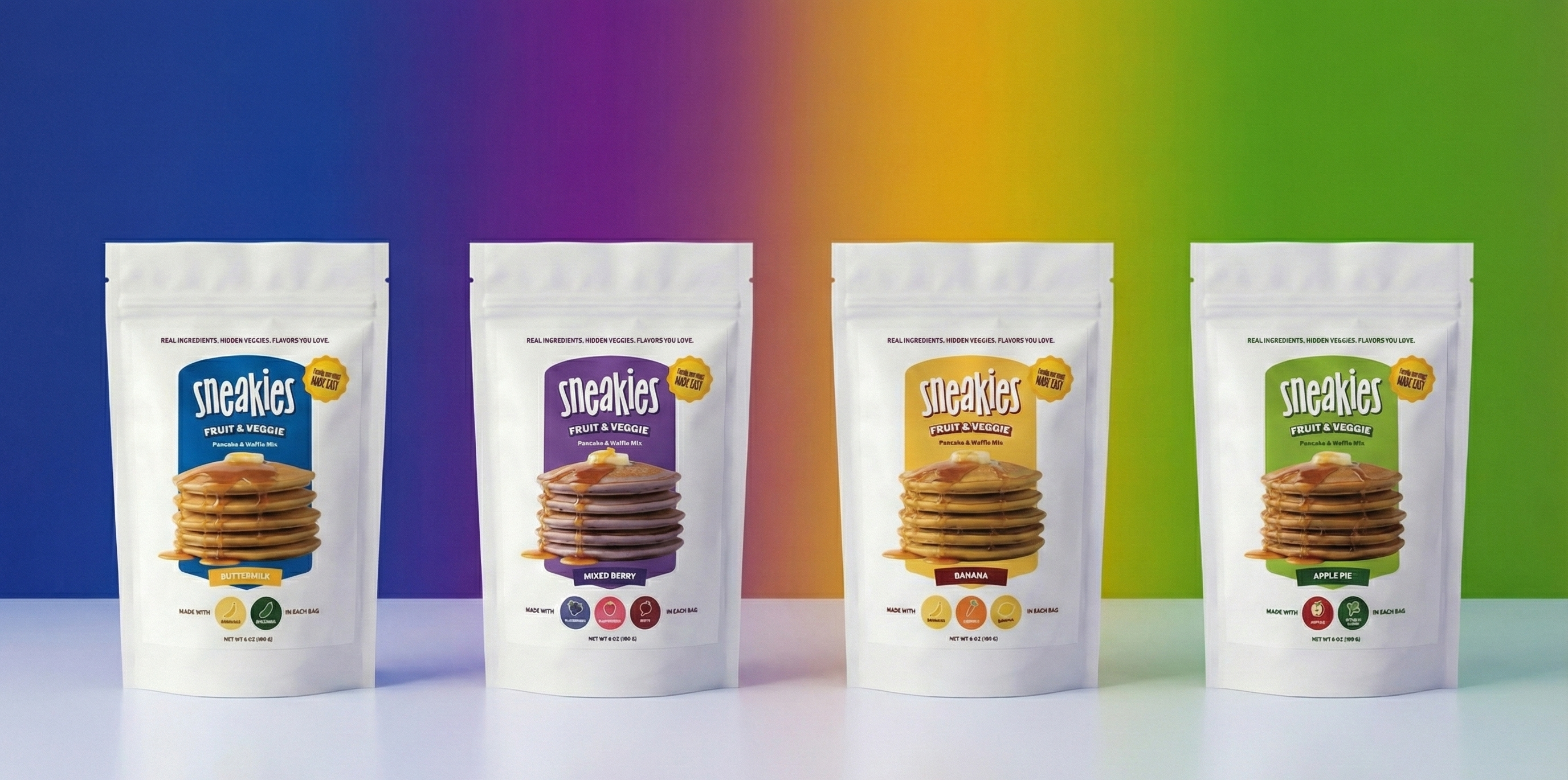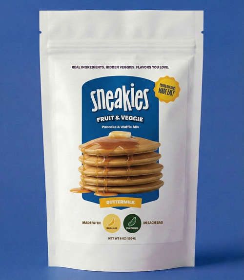 Be one of the first 100 people to try the first limited drop batch of Sneakies Pancake and Waffle Mix! Each order comes with all four flavors: Buttermilk, Mixed Berry, Banana, and Apple Pie.